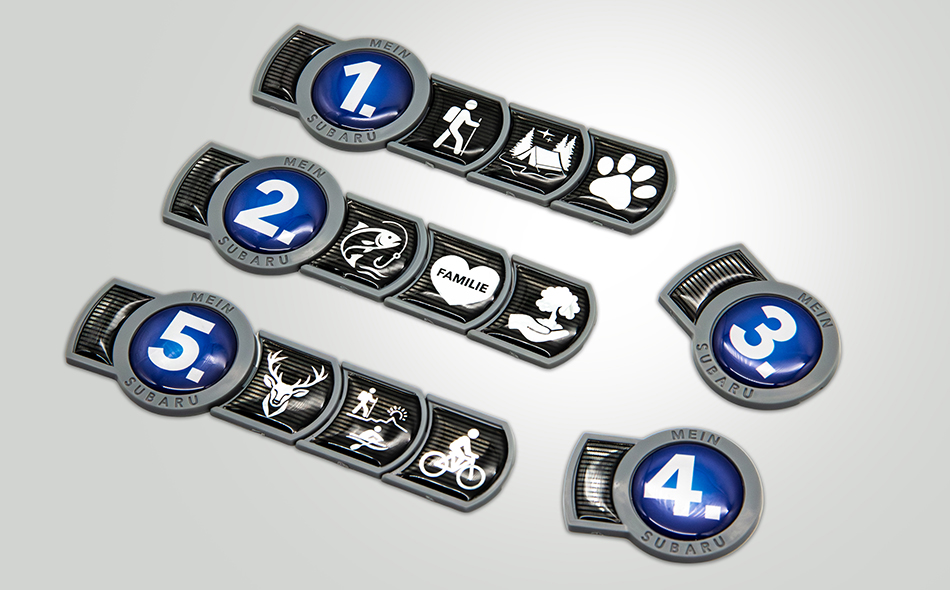 Sieht gut aus, sagt viel aus: Verschönern Sie Ihren Subaru jetzt mit Ihrem persönlichen Subaru Badge of Ownership. Mit ihm bekennen Sie sich zu einer Gemeinschaft, die Abenteuer-Spirit, Naturverbundenheit, Sportlichkeit, Offenheit, Neugier und Bodenständigkeit miteinander verbindet. Als Teil einer großartigen Gemeinschaft teilen Sie mit viele Subaru Fahrerinnen und Fahrer ähnliche Leidenschaften. Die Badges sind bei uns im Haus erhältlich1, aber Ihre individuelle Badge-Zusammenstellung bestimmen Sie: